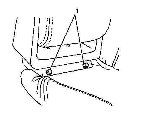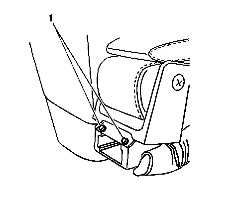 2. Install the front seat armrest bolts (1) rear set to the armrest base.