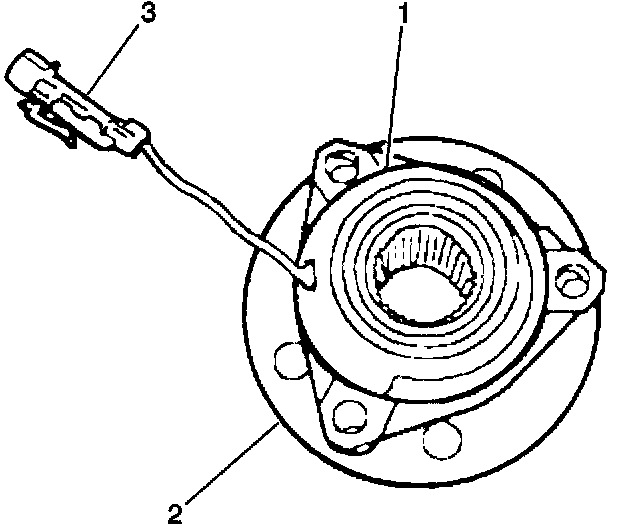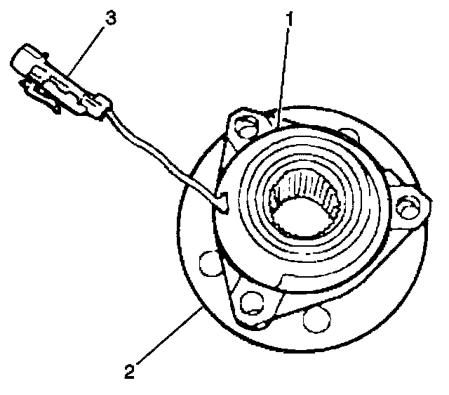 Important: The front wheel speed sensors and rings are integral with the hub and bearing assemblies. If a speed sensor or a ring needs replacement, replace the entire hub and bearing assembly. Do not service the harness pigtail individually because the harness pigtail is part of the sensor. Refer to Front Wheel Drive Shaft Bearing Replacement in Transmission and Drivetrain.