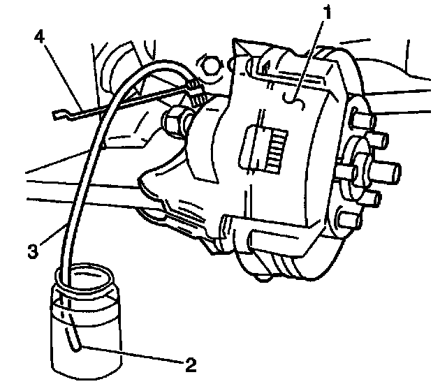 8. Attach the bleeder hose (3) to the bleeder valve at each wheel.