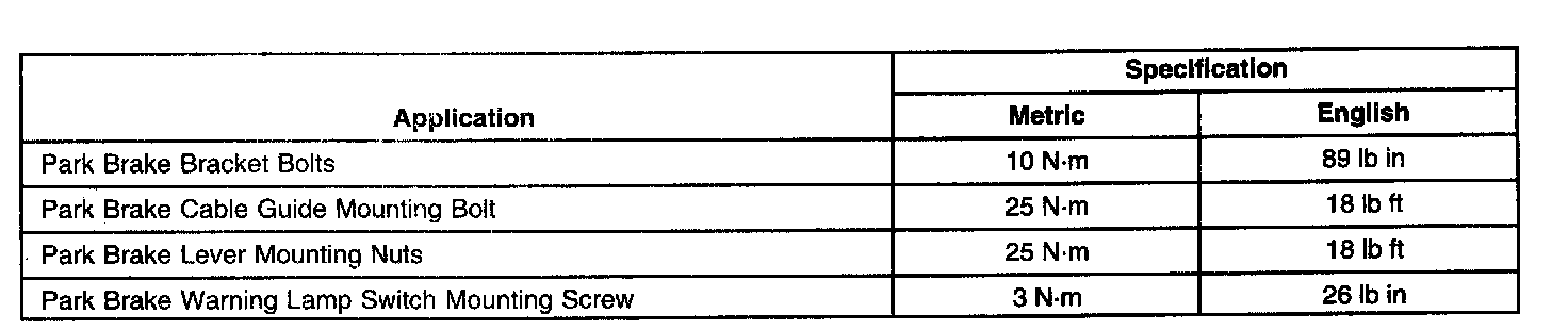 Parking Brake System: Specifications