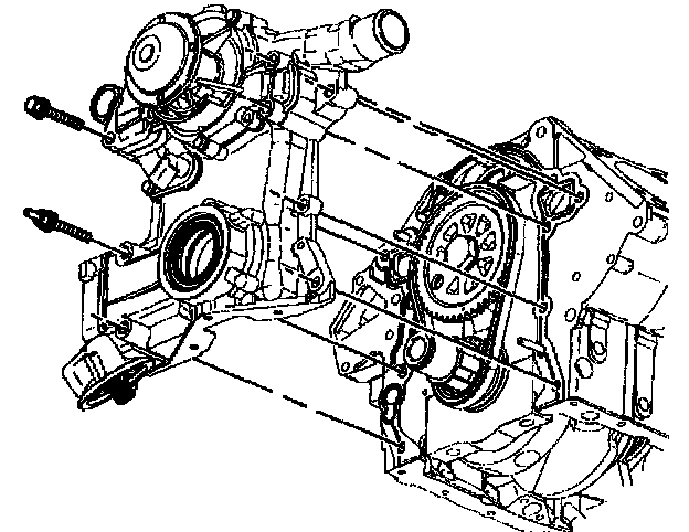 2. If replacing the engine front cover, install the oil pump cover and gear set to the engine front cover. Refer to Oil Pump Cover and Gear Set Replacement.