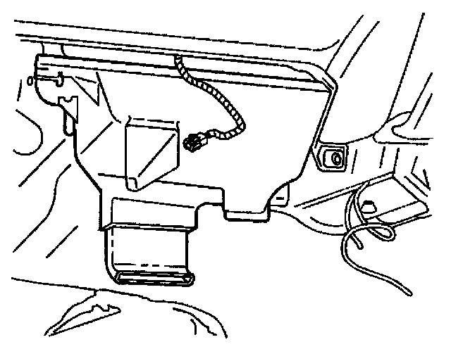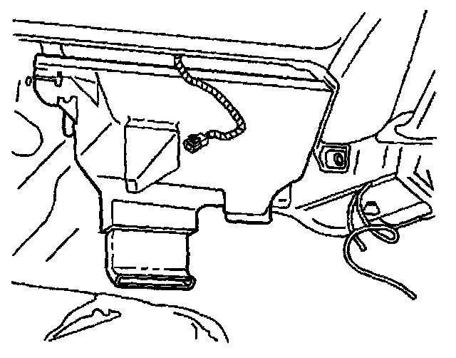 IMPORTANT: Position the heater core outlet cover downward and rearward in order to disconnect the cover from the rear area floor duct assembly.