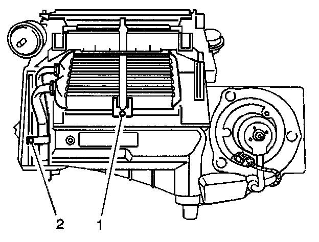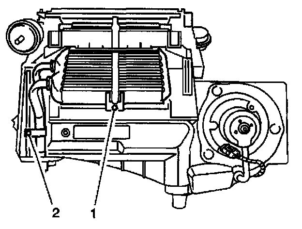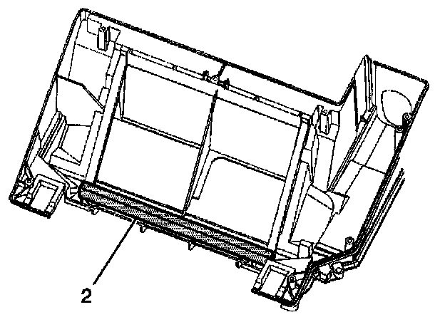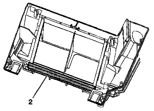 2. Install the heater core upper seal (2) from the HVAC lower case.