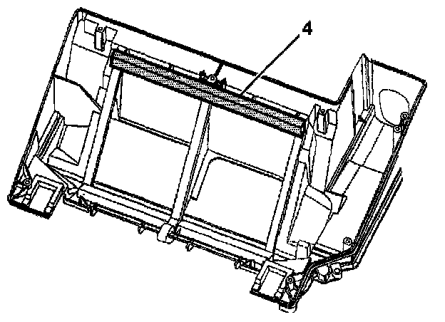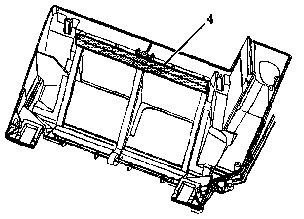 17. Remove and discard the heater core lower seal (4) from the HVAC case.