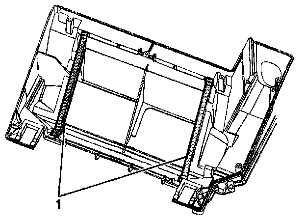 1. Install the heater core side seals (1) from the HVAC lower case.