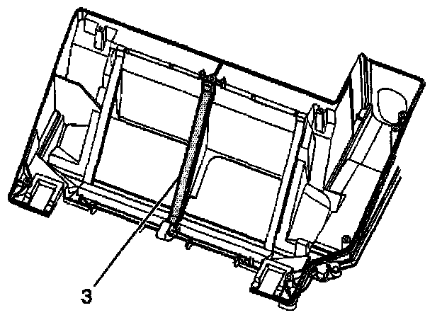 18. Remove and discard the heater core center seal (3) from the HVAC case.