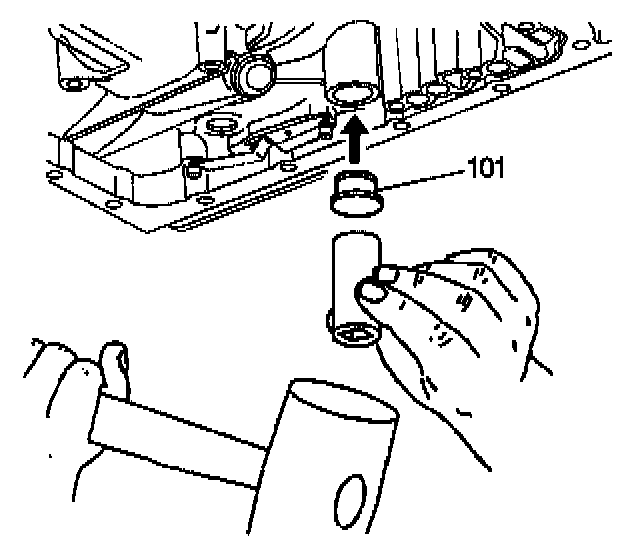 2. Remove the filter (100). Remove the lip ring seal (101) pressed into the case only if replacement is necessary.