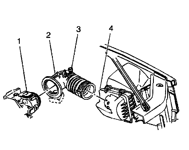 1. Position and insert the IAT sensor (3) into the rear air intake duct (2).