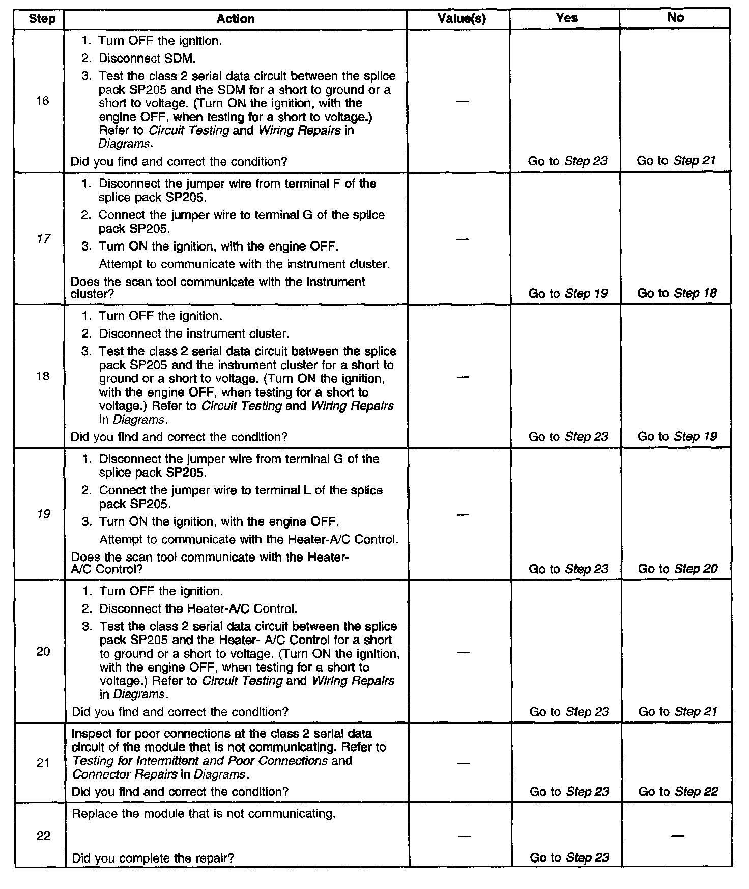 17. This test isolates the instrument cluster class 2 serial data circuit.