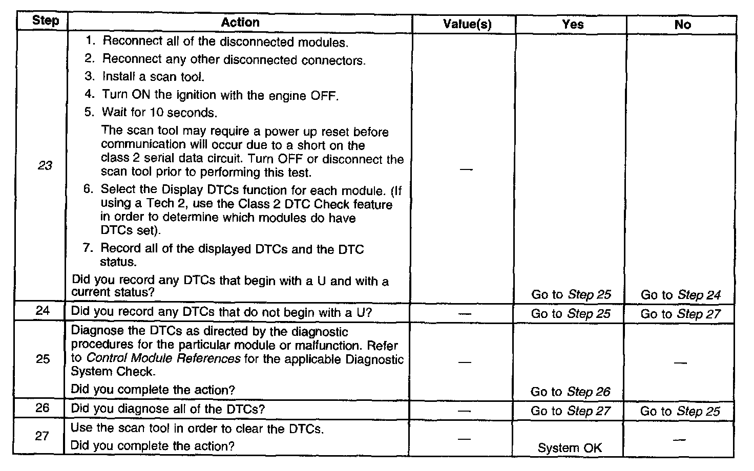 23. If there are no current DTC's that begin with a "U", the communication malfunction has been repaired.