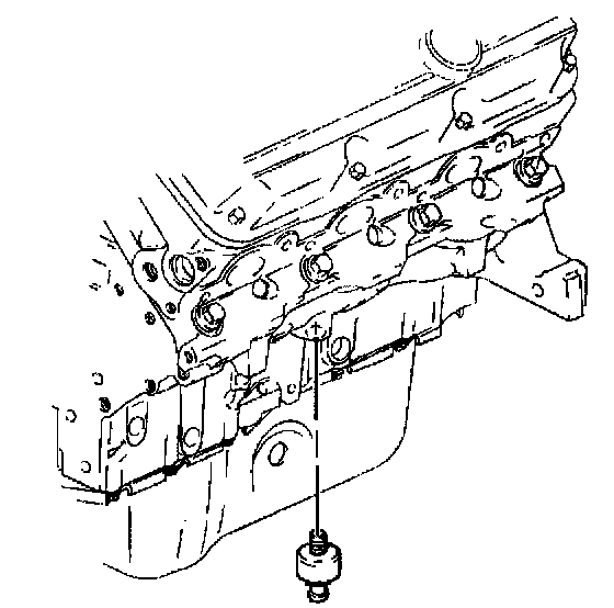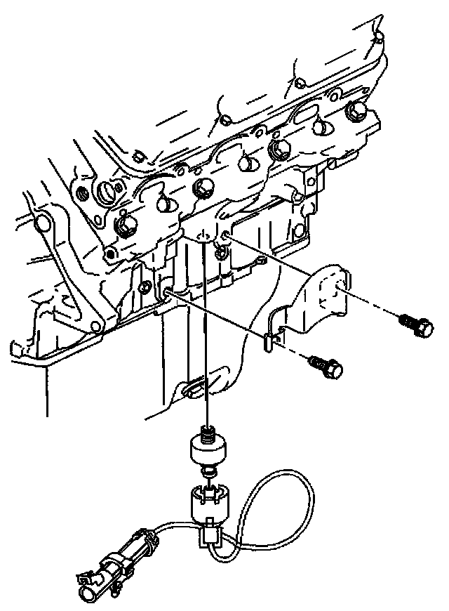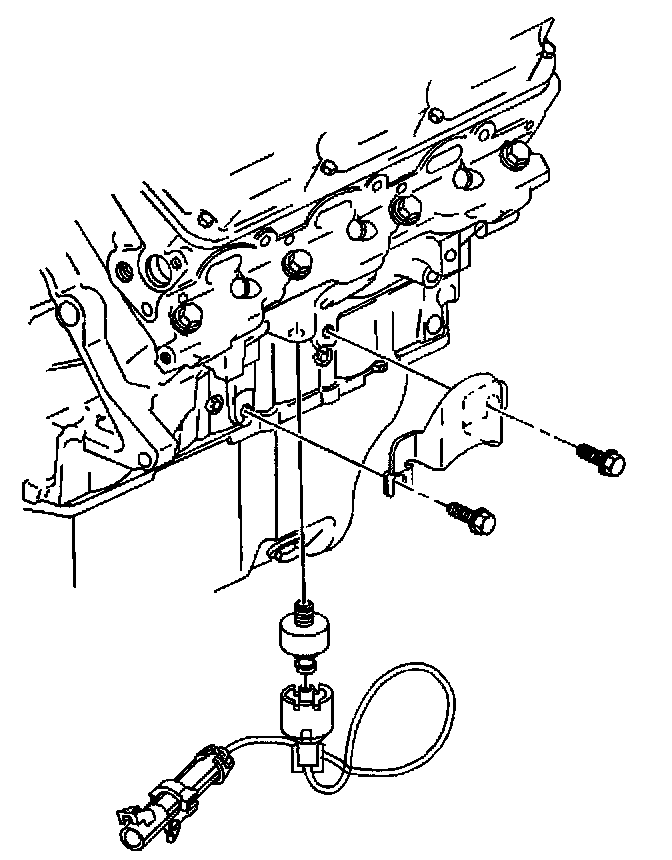 2. Install the knock sensor heat shield mounting bolt located under the freeze plug or block heater if equipped.