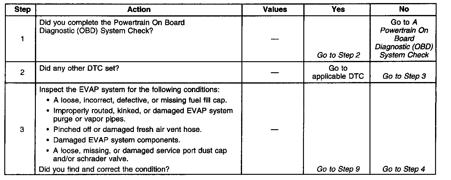 Refer to Emission Hose Routing Diagram, EVAP System OverviewDiagnostic Chart (Part 1 Of 2):
