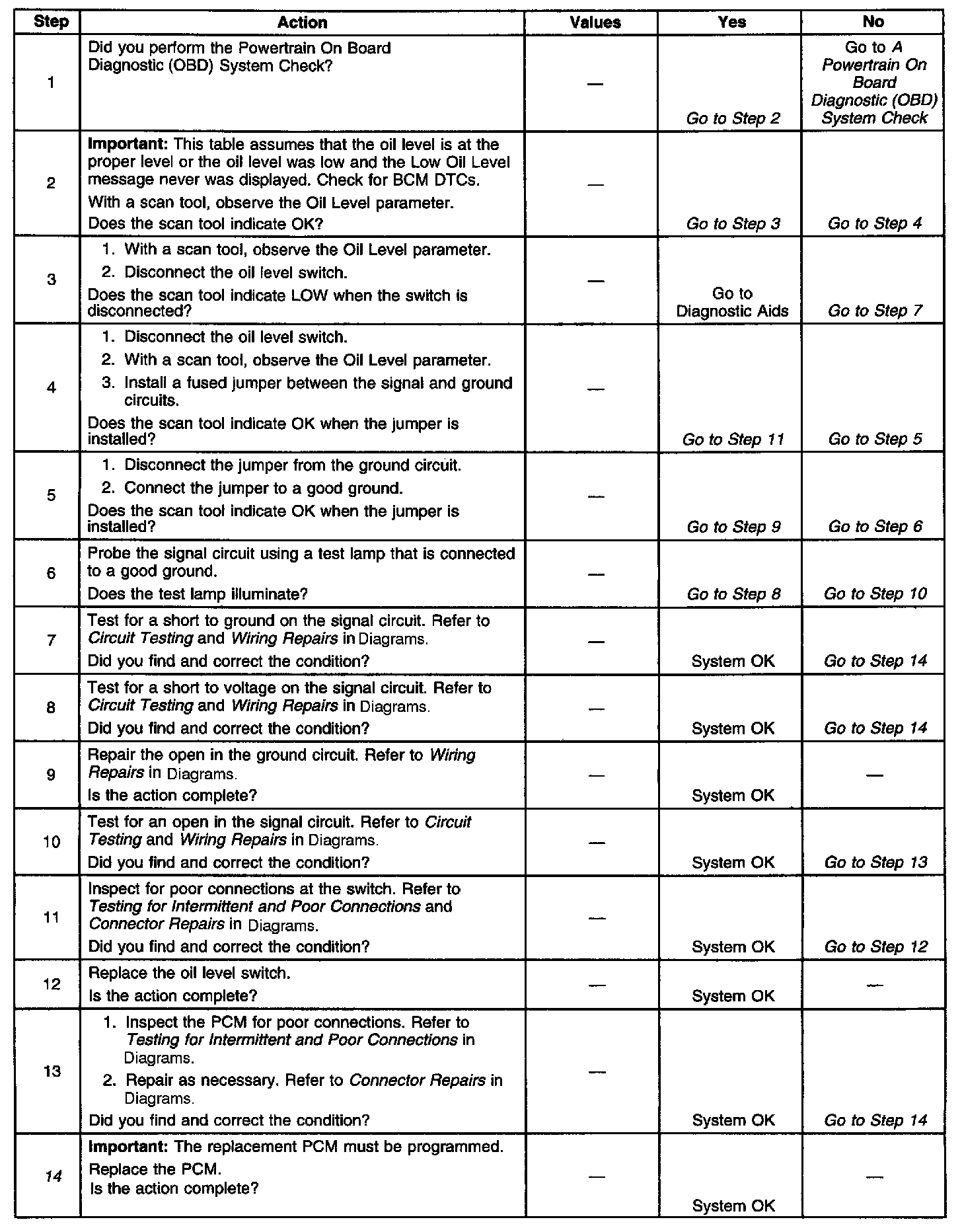Engine Oil Level Sensor/Switch Diagnosis