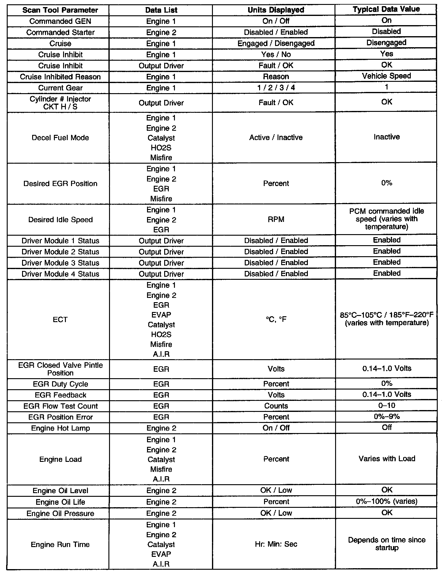IMPORTANT: Use the Typical Scan Data Values only after the following conditions are met: