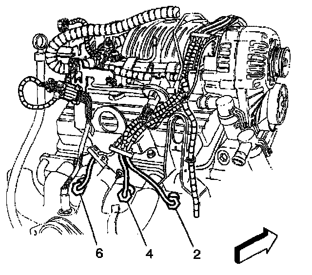 3. Remove the spark plug wires (2,4,6) from the spark plugs at the rear of the engine using the following steps: