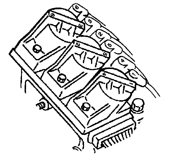 5. Install the spark plug wires (2,4,6) to the spark plugs in the proper position at the rear of the engine.