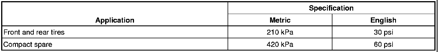 Tire Inflation Pressure Specifications