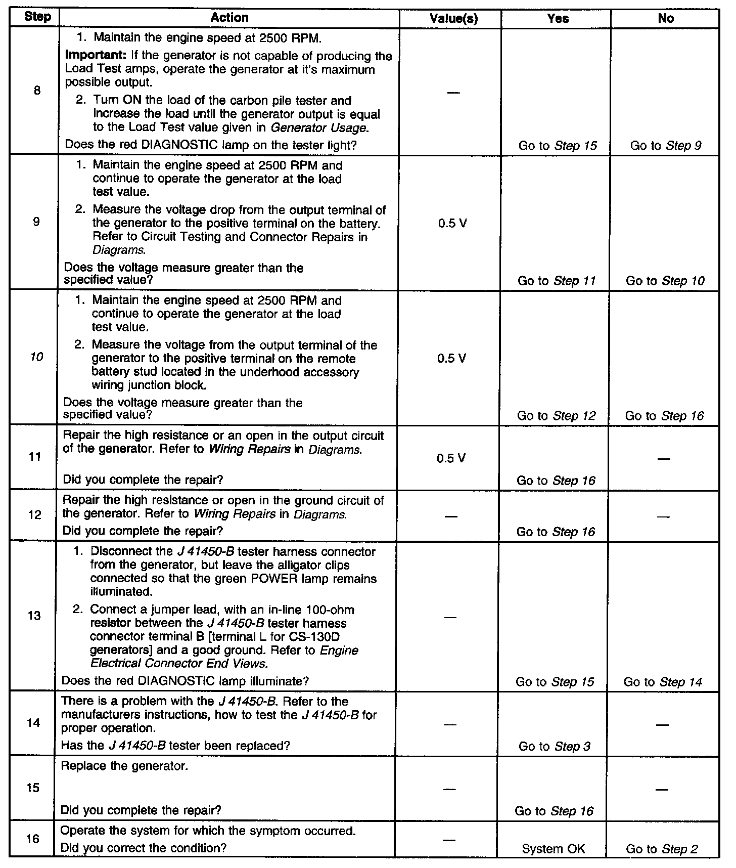 10. It the test has shown the generator to be OK, however the condition remains, test the PCM or its control circuit(s) to the generator.