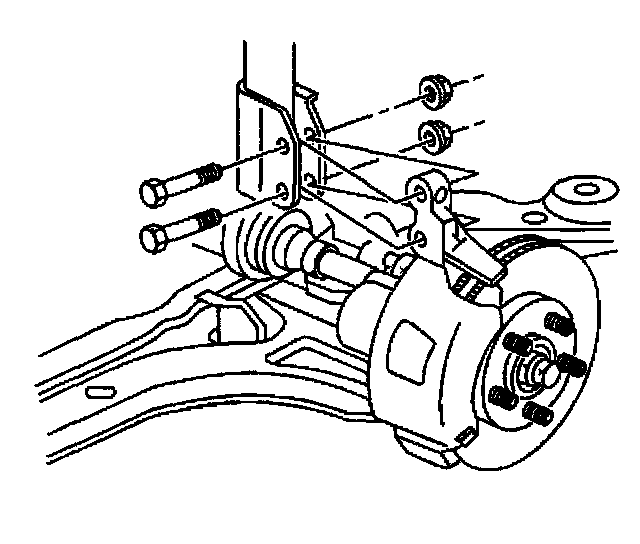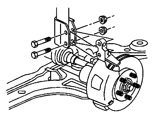 2. Remove the tire and wheel. Refer to Tire and Wheel Removal and Installation in Wheels, Tires and Alignment.