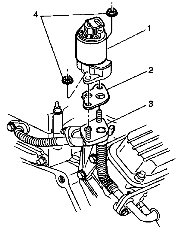 2. Install the EGR valve (1) and the retaining nuts (4).