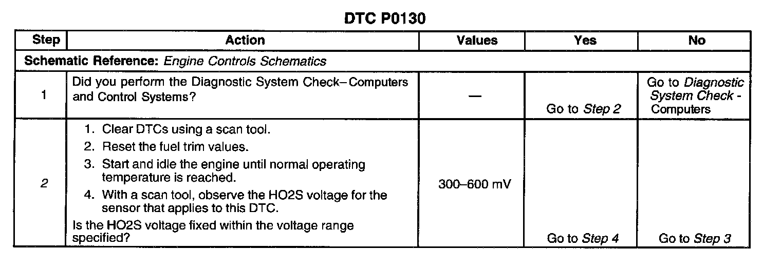2. This step checks for proper sensor activity. HO2S voltage should rapidly swing above and below the range specified.