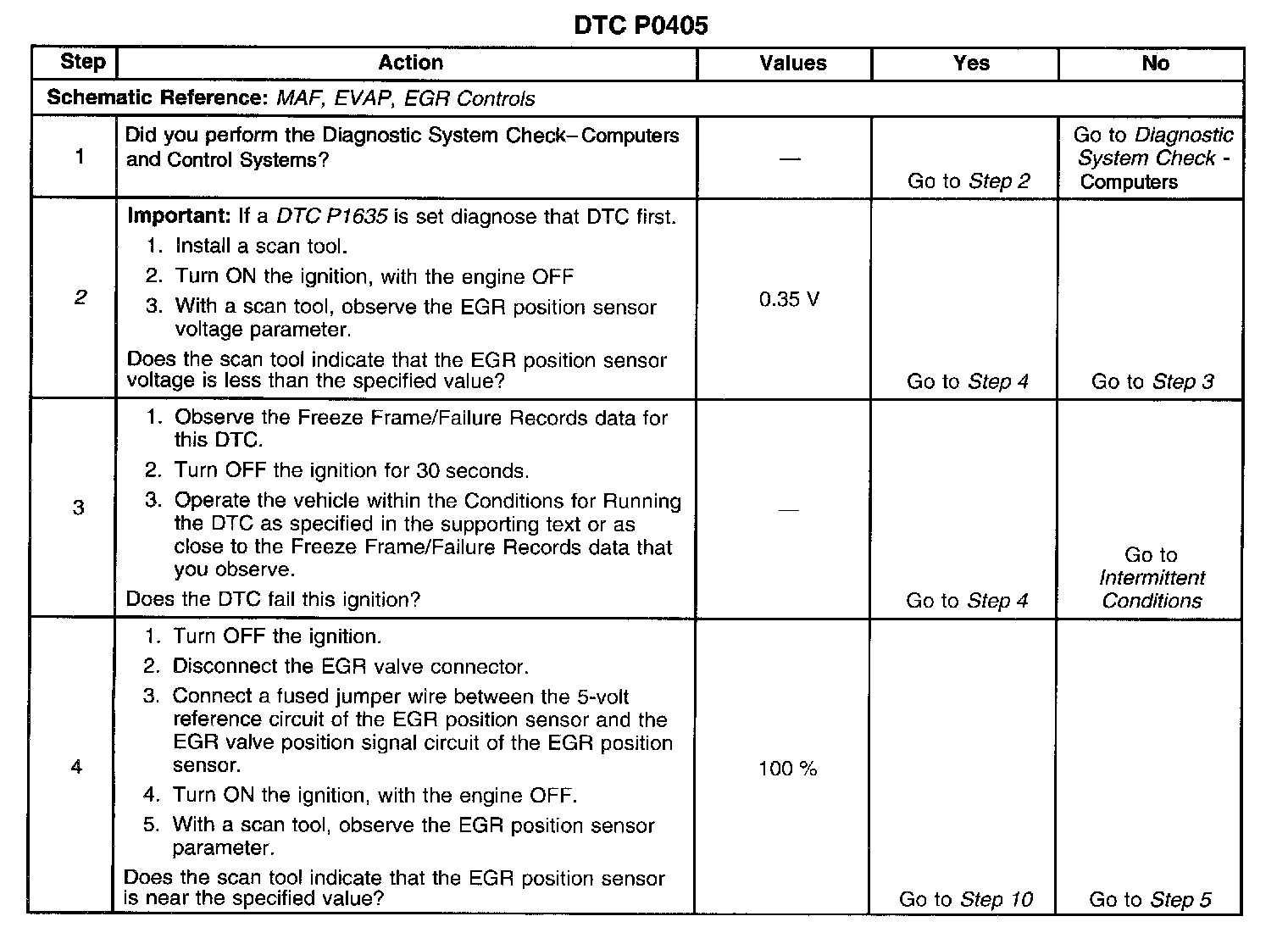 ^ The EGR position sensor is less than 0.35 volts at any time.