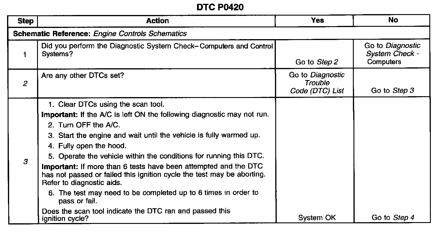 ^ Use the scan tool in order to determine if DTC P0420 has passed or failed this key cycle.