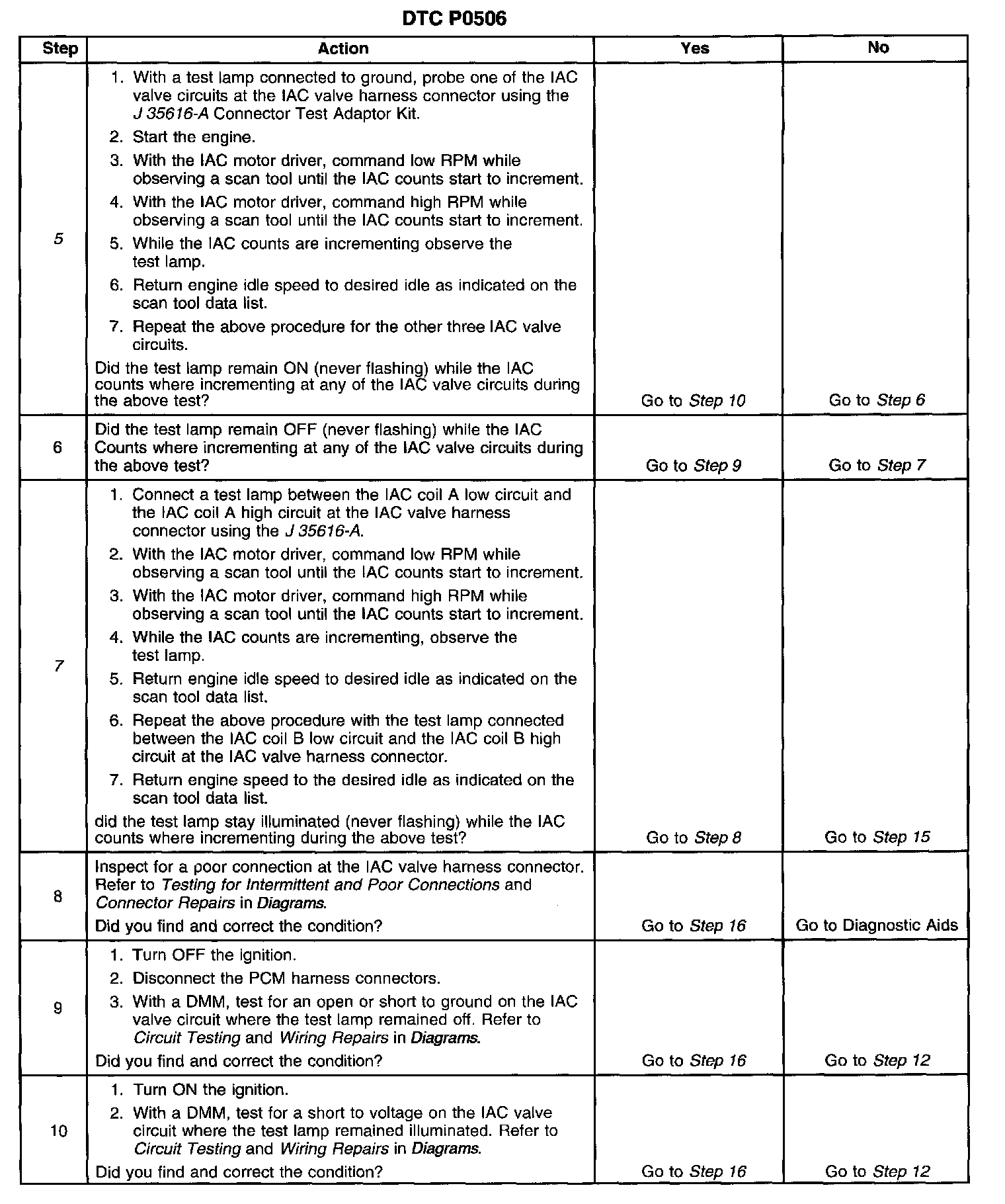 5. This test will determine the ability of the engine controller and IAC valve circuits to control the IAC valve.