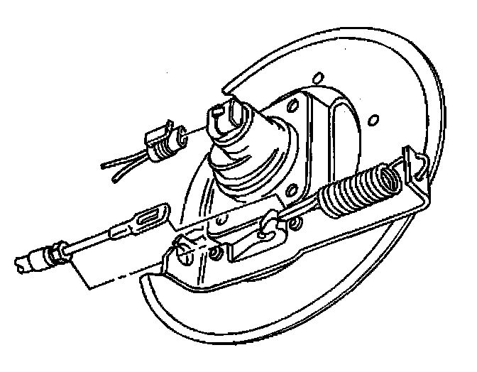 7. Disconnect the park brake cable return spring from the park brake actuator and bracket at the rear wheel.