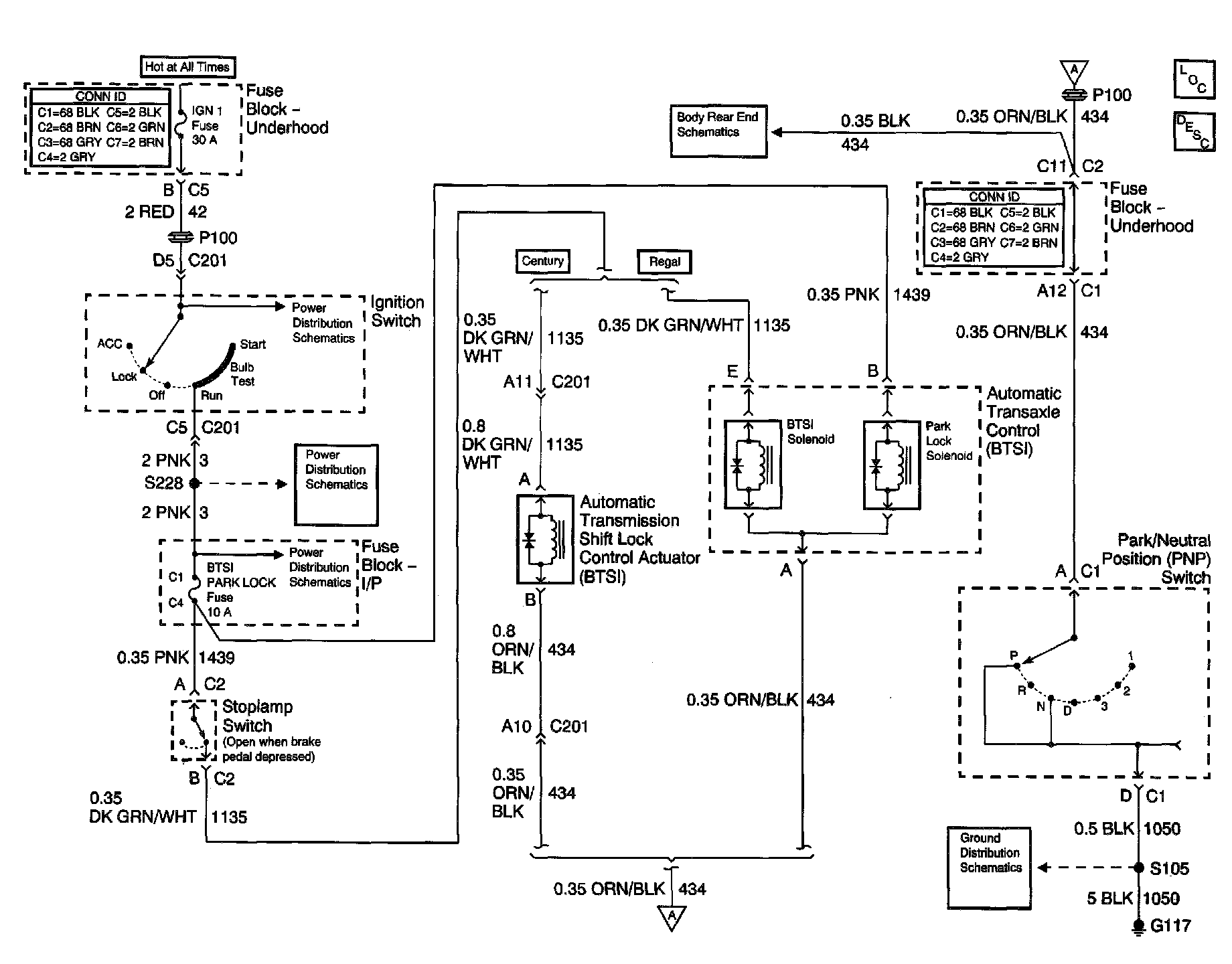 Automatic Transmission Shift Lock Control Schematics: