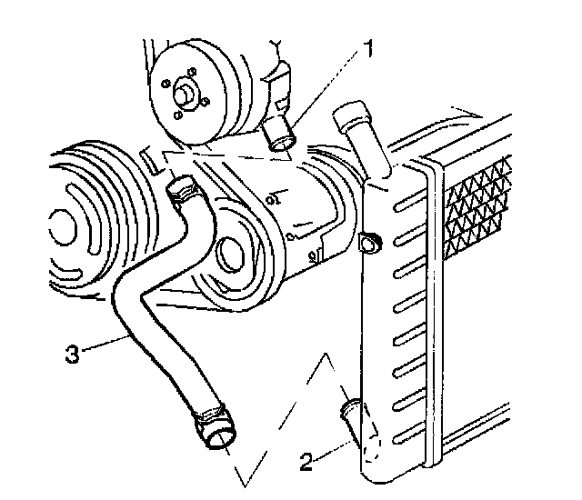 5. Disconnect the outlet hose (3) from the radiator (2).