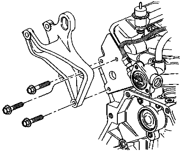 2. Install the engine mount strut bracket bolts through the engine mount strut bracket to the cylinder head.