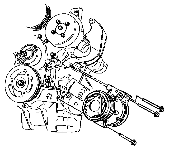 2. Remove the air conditioning compressor mounting bolts.
