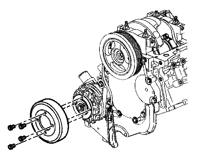 Remove the water pump pulley bolts.