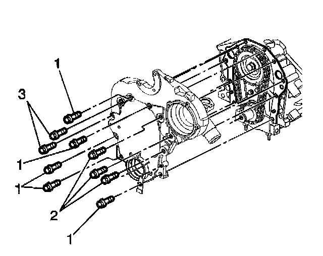 Remove the engine front cover bolts (1, 2, 3).