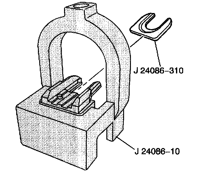 2. Install fork insert J 24086-310 into fixture J 24066-10 Piston Pin Remover/Installer Base.