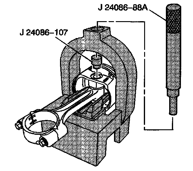4. Install the J 24086-107 onto the piston pin and J 24086-88A through the fixture and onto J 24086-107.
