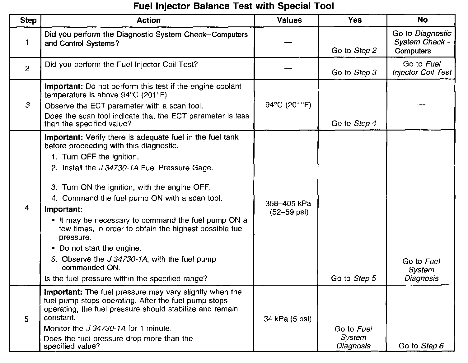 3. The Engine Coolant Temperature (ECT) must be below the operating temperature in order to avoid irregular fuel pressure readings due to hot soak fuel boiling.