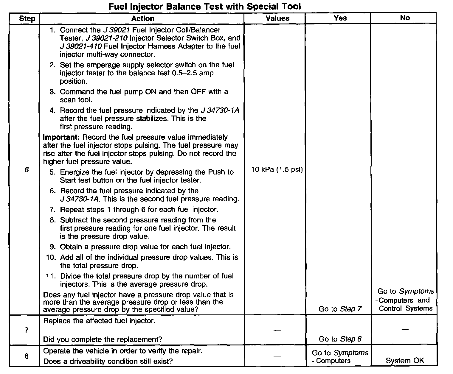 Fuel Injector Balance Test Example (Typical):