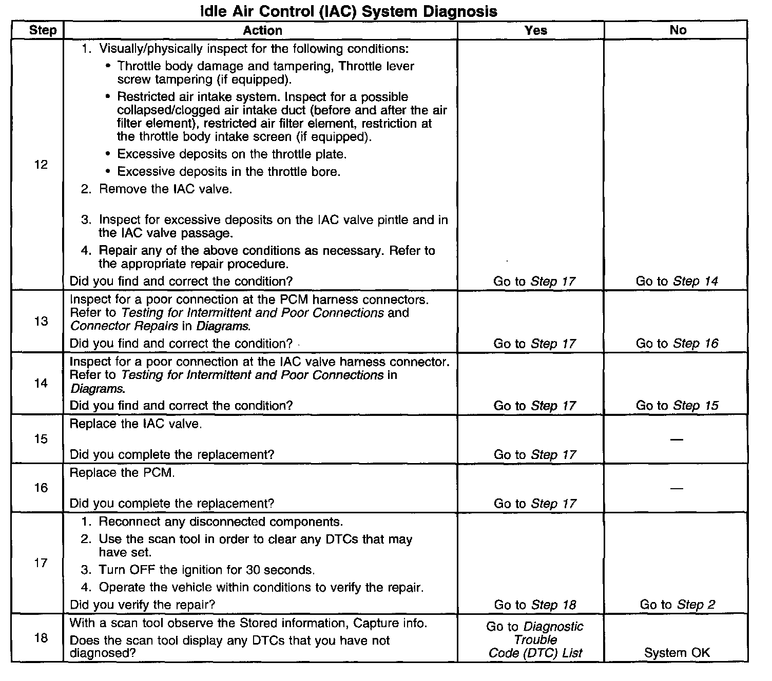 ^ A high or unstable idle condition could be caused by a non-IAC system problem that can not be overcome by the IAC valve. Refer to Symptoms - Computers and Control Systems. Symptom Related Diagnostic Procedures