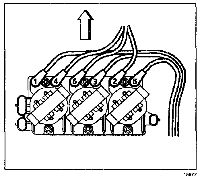 2. Note position of spark plug wires for installation and disconnect the spark plug wires from ignition coils.