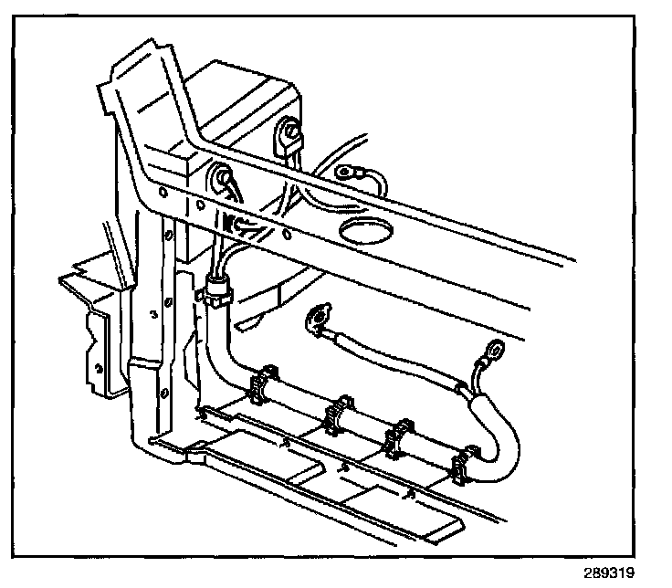 2. Install the battery cable retainers to the radiator support.