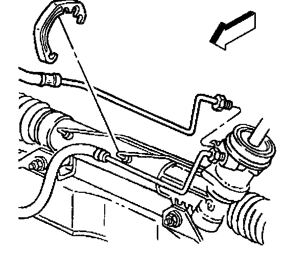 6. Remove the power steering pressure line from the clamps on the power steering gear.