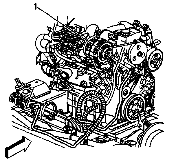 5. Install the power steering pressure line to the retaining bracket on the engine.