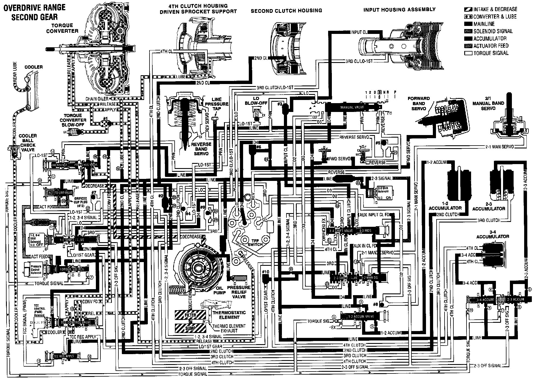 2nd clutch fluid pressure applies the Second clutch to shift the transmission into Overdrive Range Second gear.