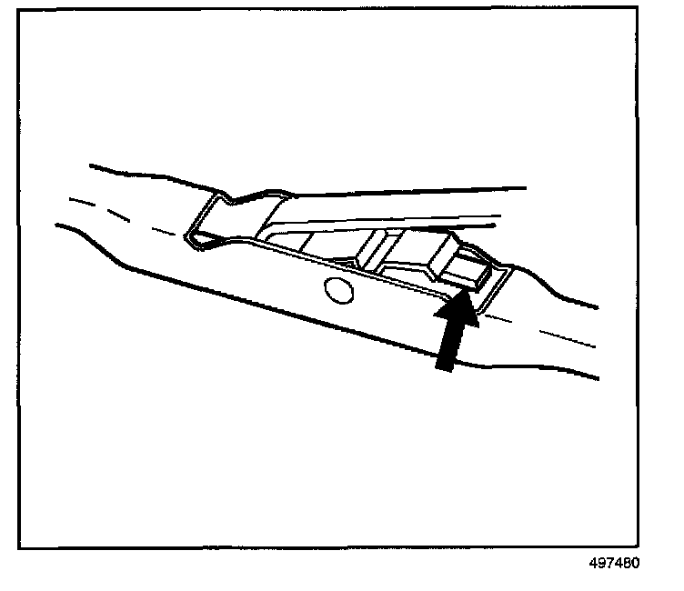 4. Push in the button of the wiper blade clip and remove the wiper blade from the inside radius of the wiper arm.
