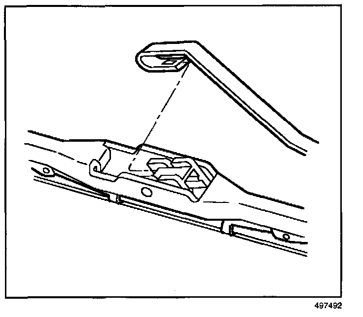 1. Insert the hook of the wiper arm through the opening in the wiper blade.