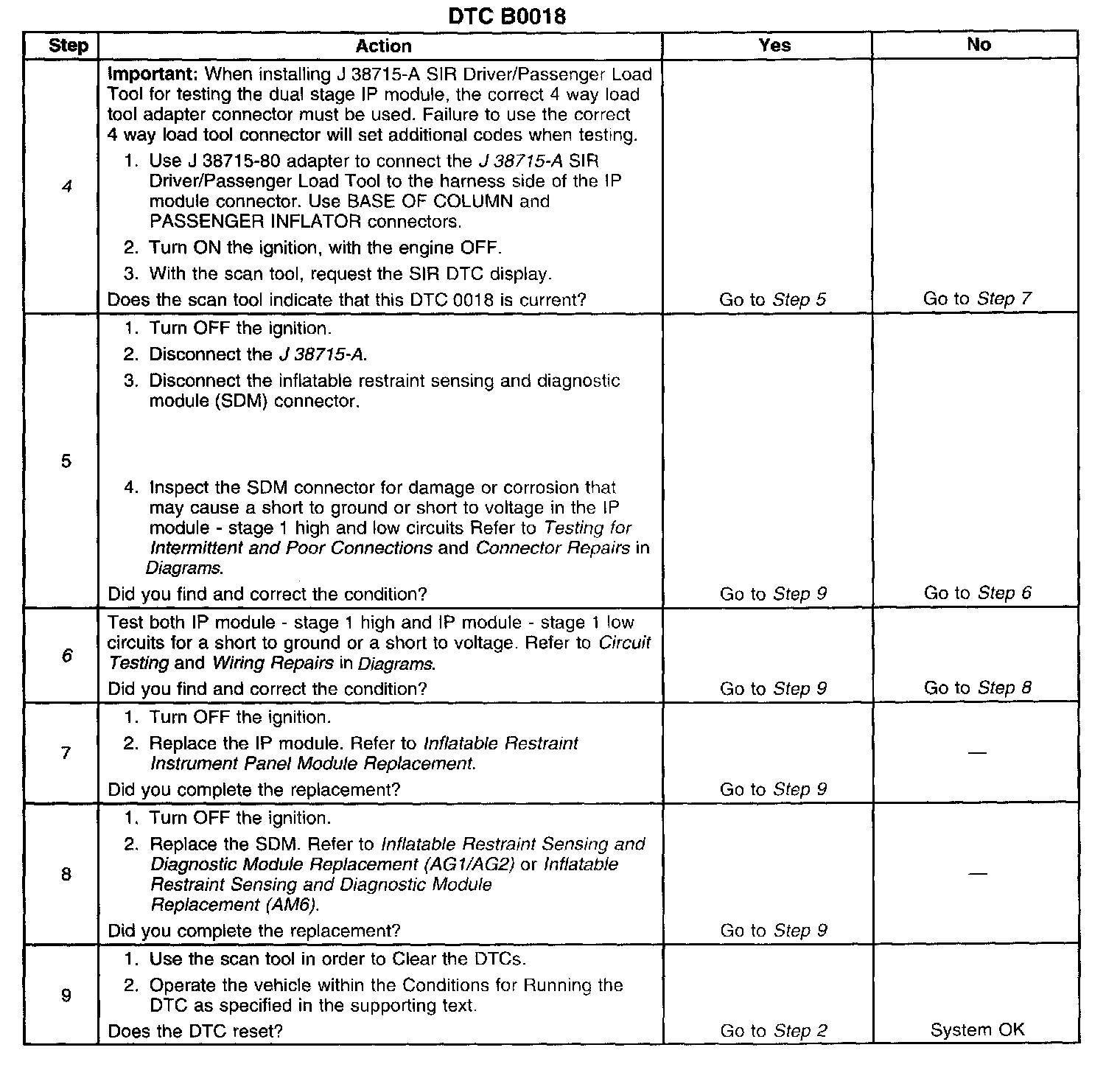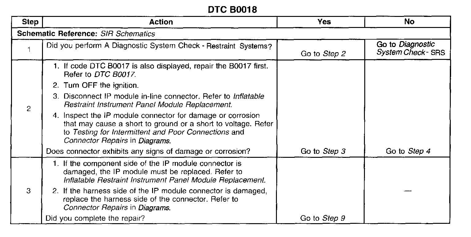 The number(s) below refer to the step number(s) on the diagnostic table.