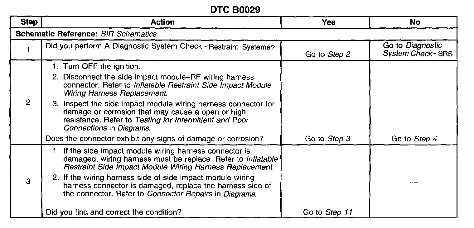 9. Tests for a open or high resistance in the side impact module-RF high and side impact module-RF low circuits.