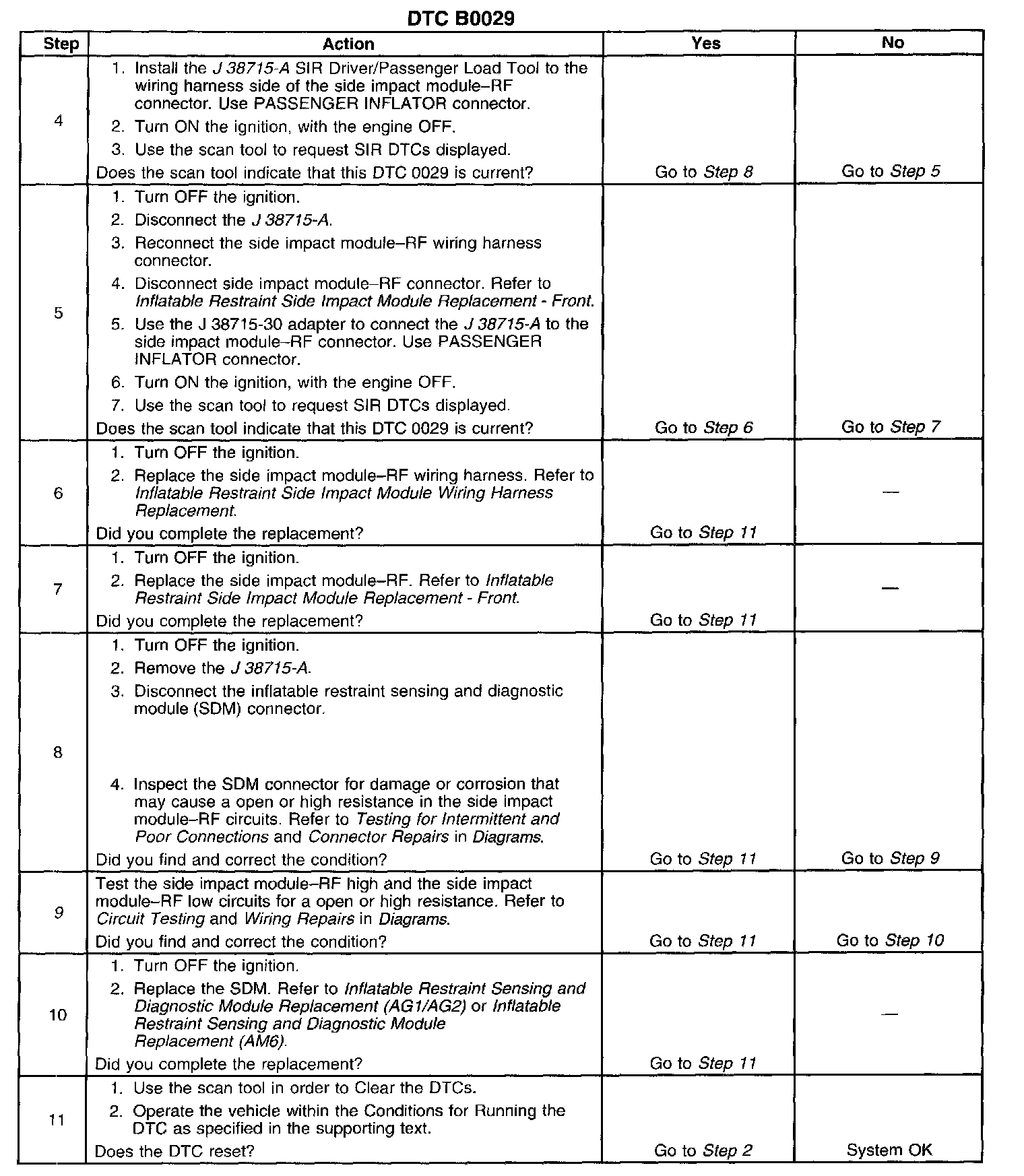 ^ The condition responsible for setting the DTC no longer exists and the scan tool Clear DTCs function is used.